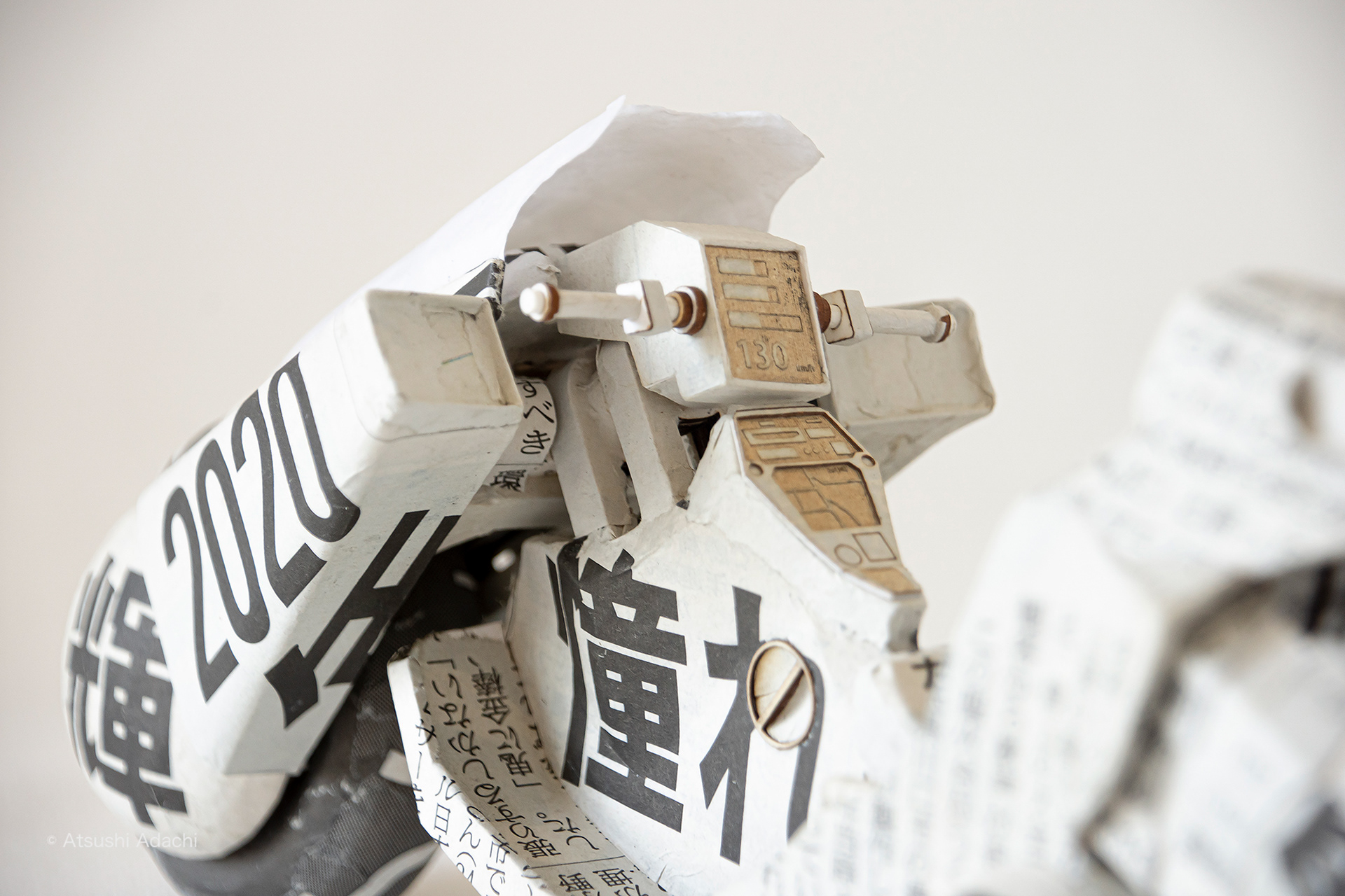 漫画「アキラ」に登場する主人公「金田正太郎」の愛車をモチーフに、2013 年発行の東京オリンピック招致決定の記事が載る新聞を使用した。