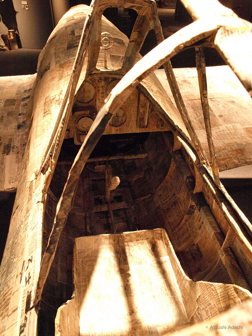 素材:戦中新聞(コピー)、段ボール、角材、水彩絵具